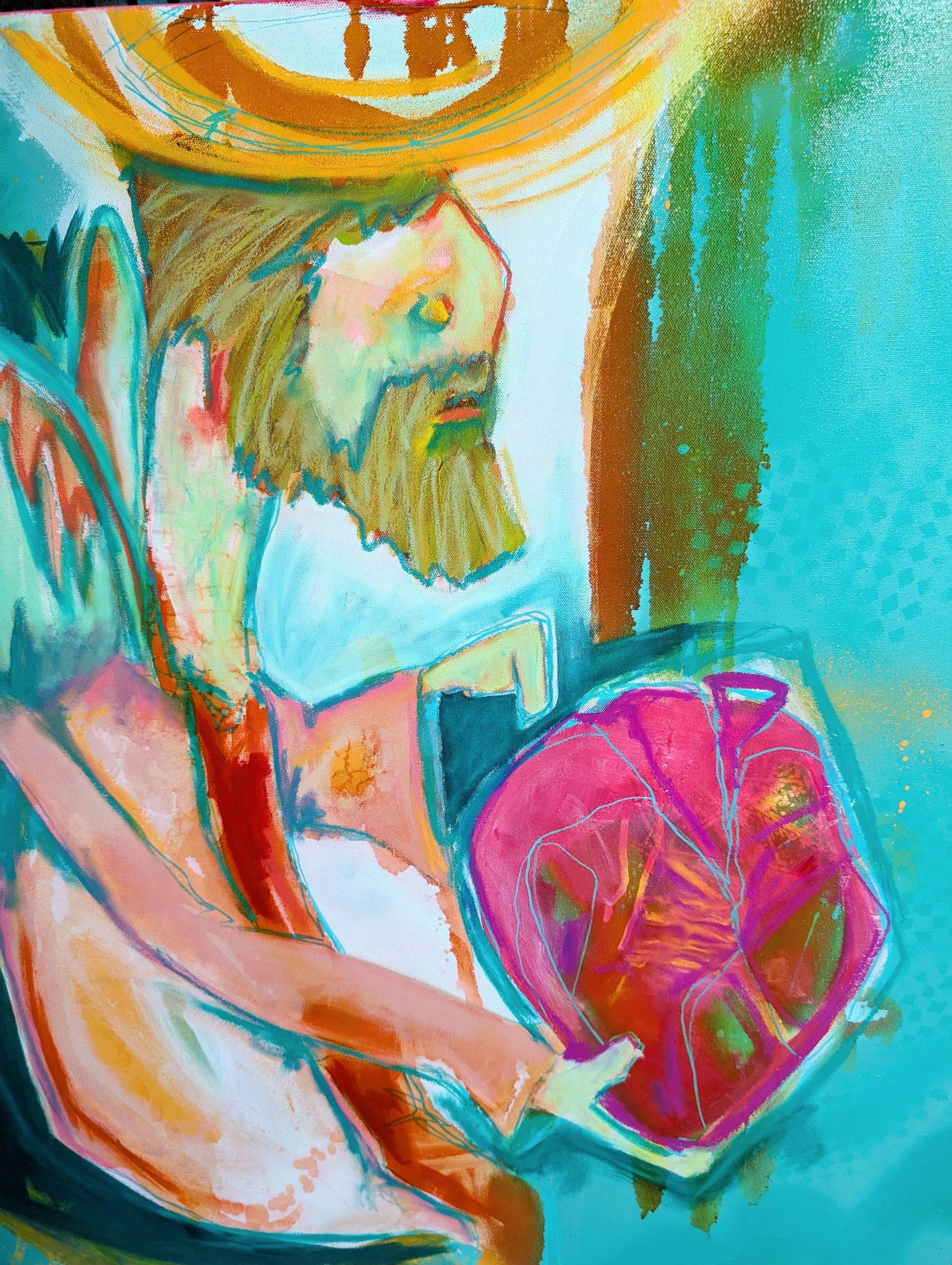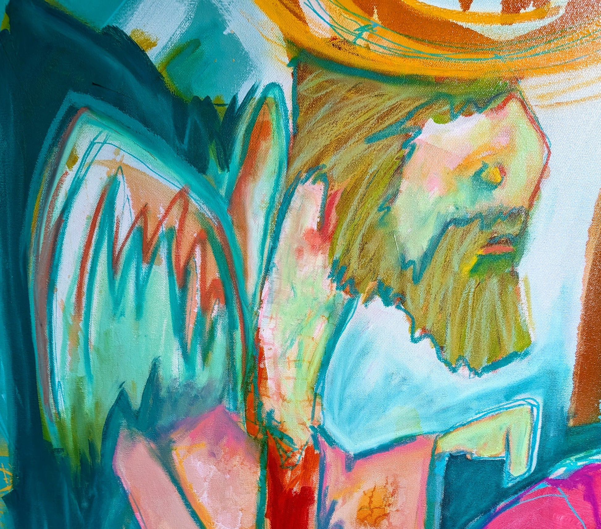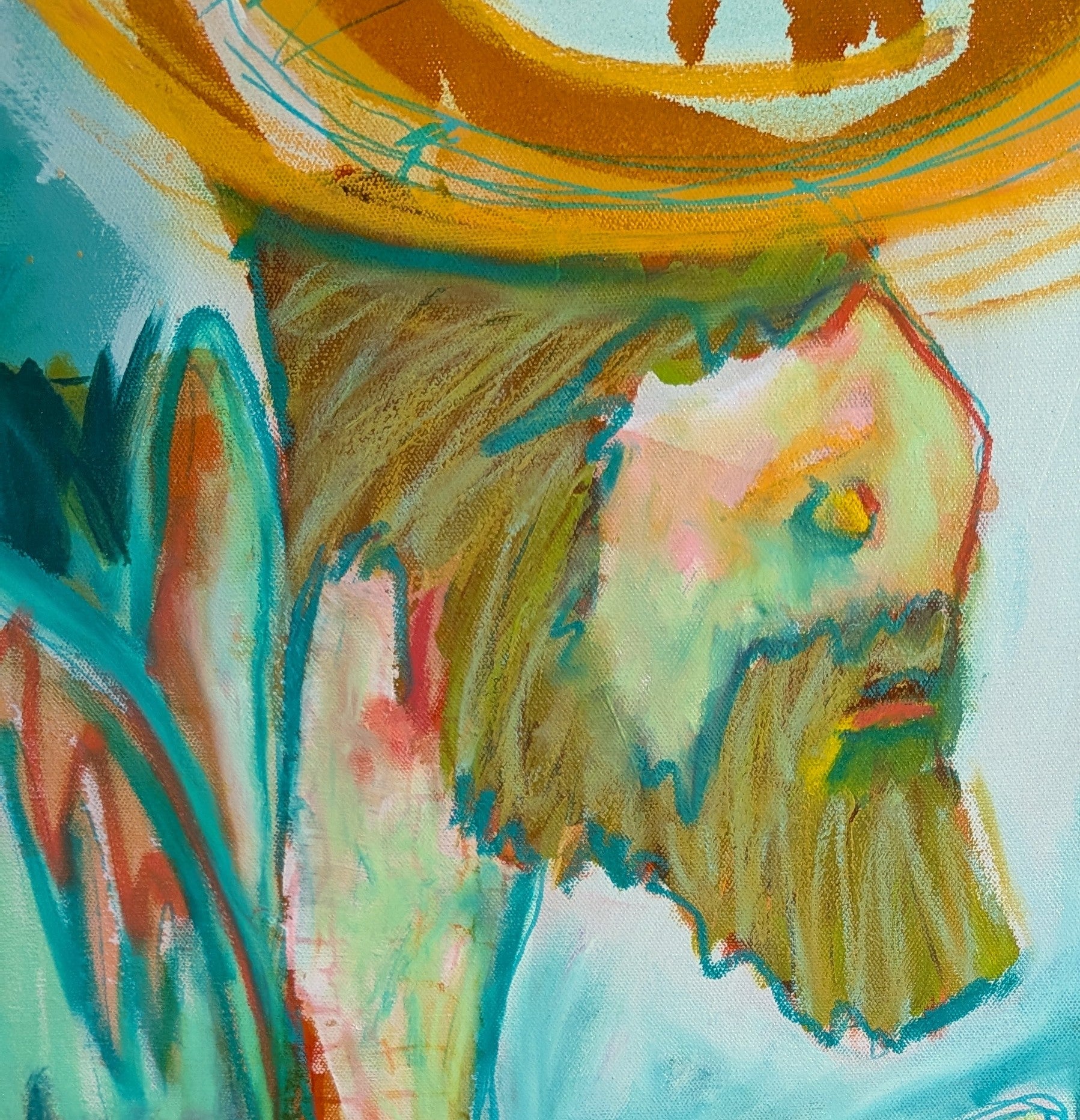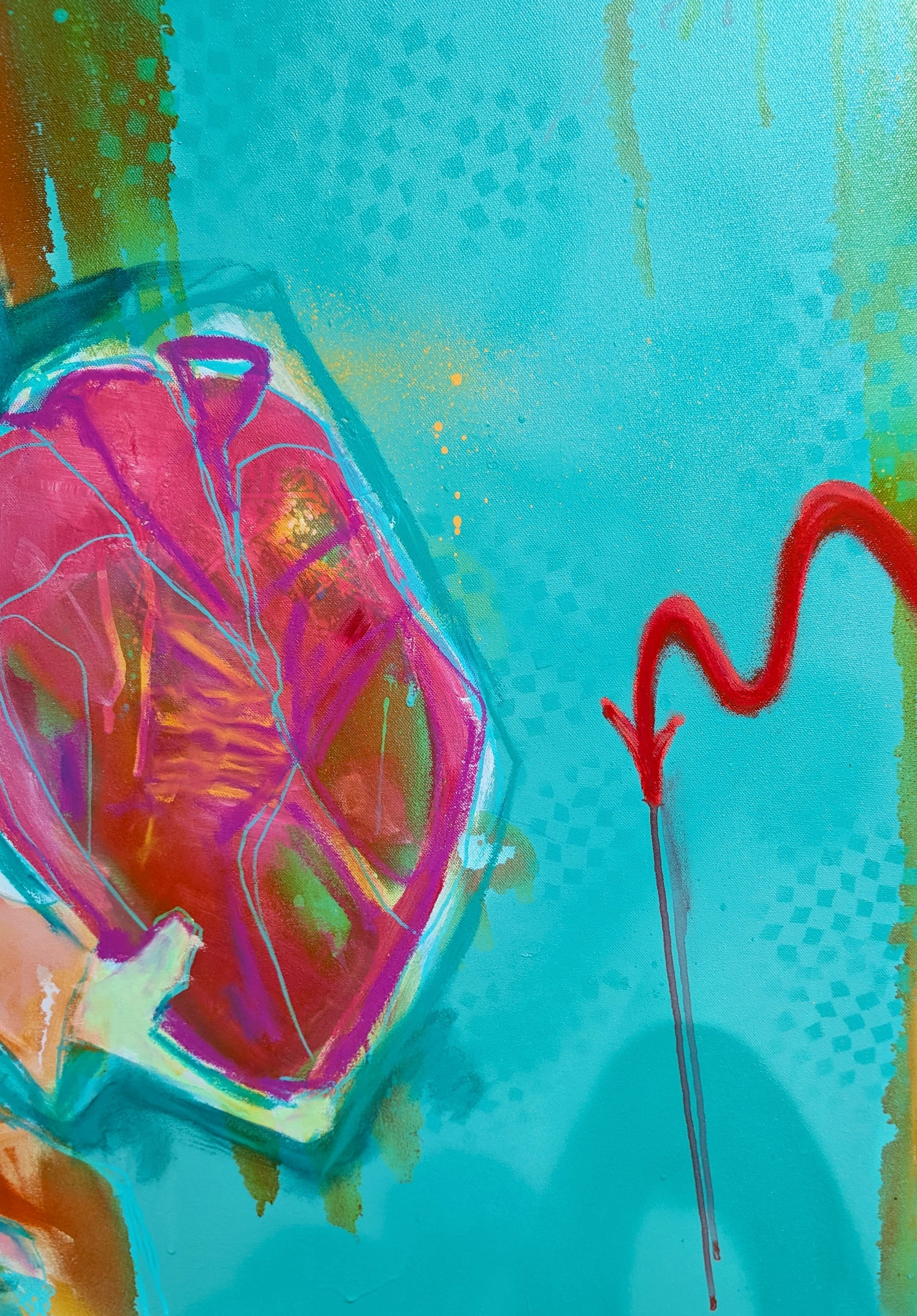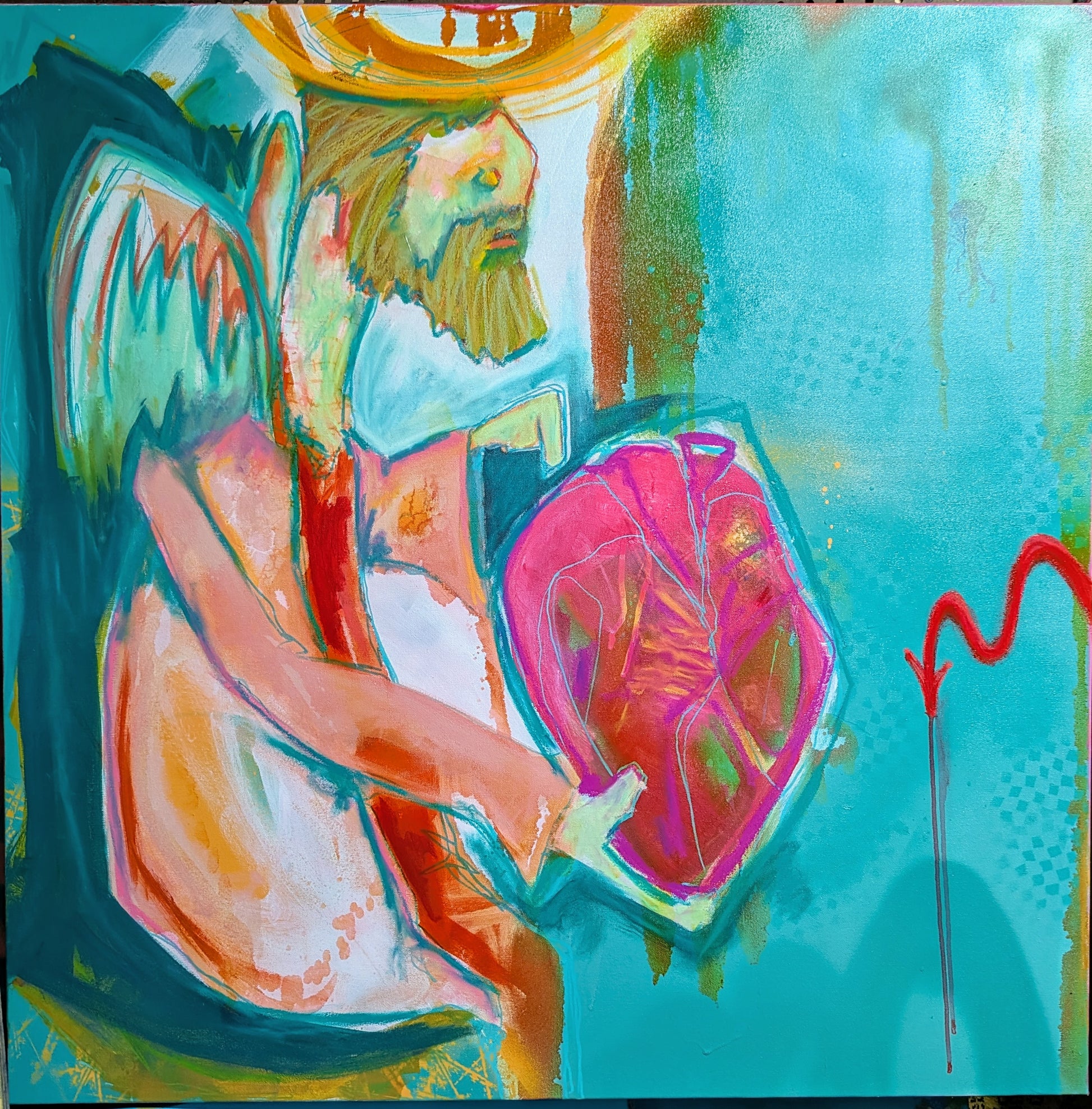 Acrylic paint, spray and soft oil pastel on 36x36-inch stretched canvas